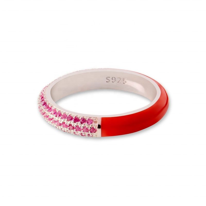 | インレイ技術: | マイクロ挿入物 | 製品名: | エレガント 925 シルバー 18k 黄金 半ジルコーン 半エナメルリング |
